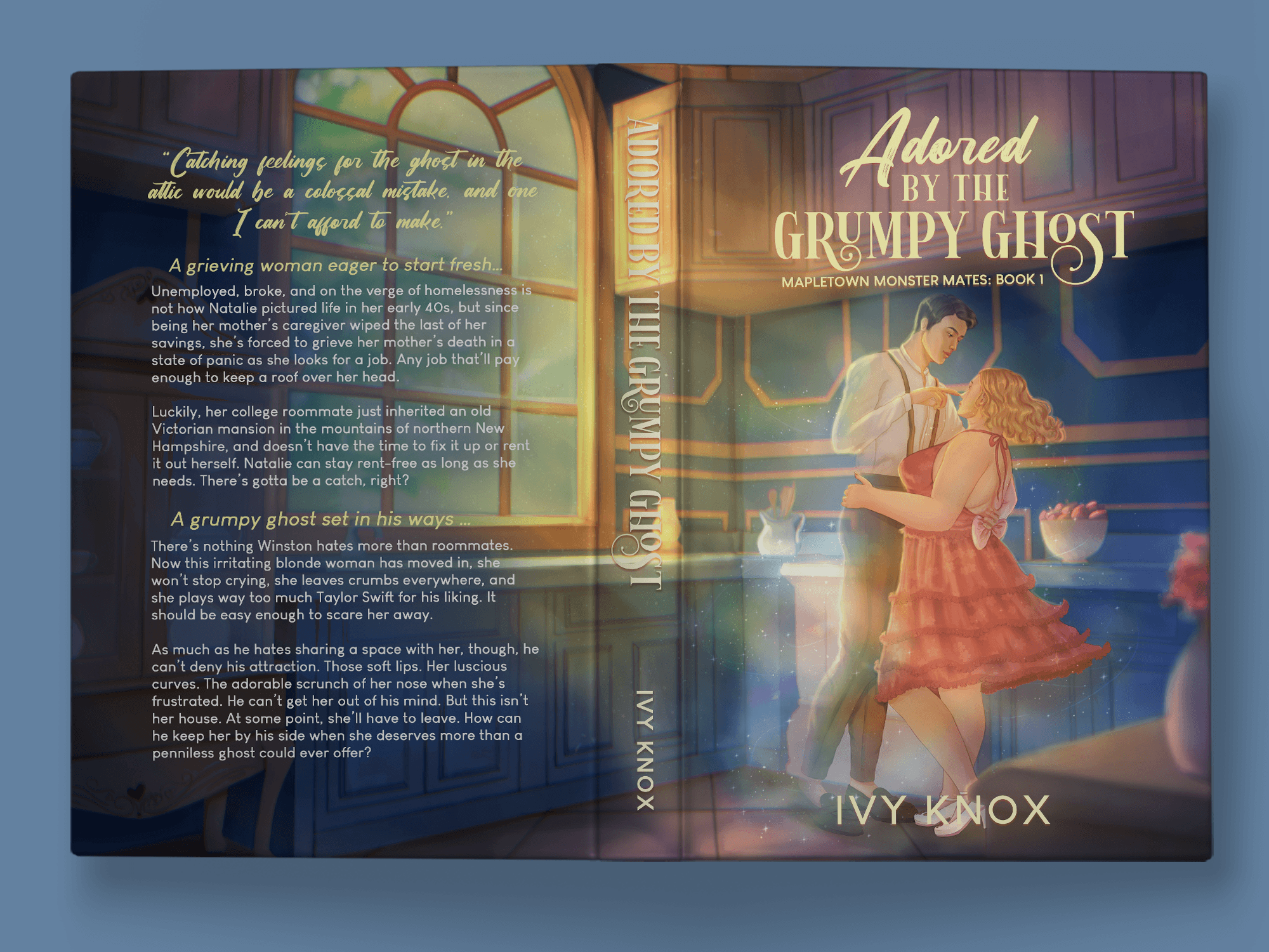 And with that, here is our final book cover illustration and design for Adored by the Grumpy Ghost!